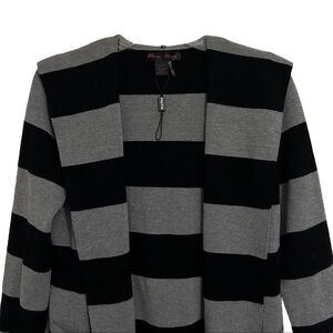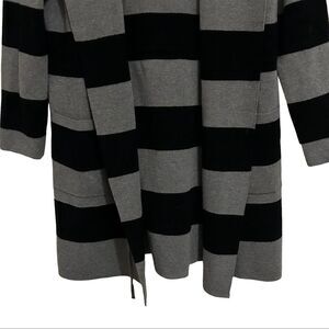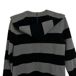 ELENA WANG Long Sleeve Black/Gray Striped Hooded Longline Cardigan S