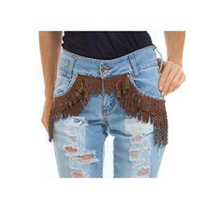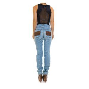 ELEONORA Real Leather Trim Distressed Skinny Jeans REAR!