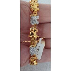 ELEPHANT MOTIF GOLD ELECTROPLATE RHINESTONE 8" BRACELET W/BOX AND TAG