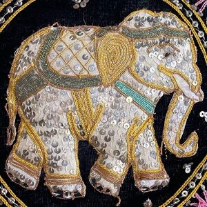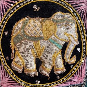ELEPHANT PILLOW Beautiful Embellished Sequined Embroidered Asian Metallic Fabric. Black Satin Fabric on back of pillow with zipper. Made by Hand in India. Never Used.