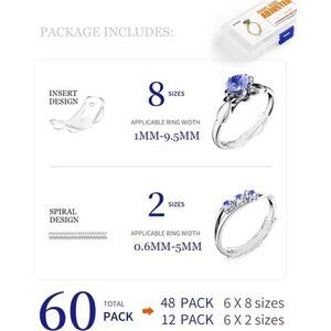 🧿Package Includes: 12pcs ring size adjuster (spiral design), 48pcs ring adjuster pads (insert design), 1 x Ring Adjuster Organizer.