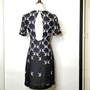 ELEVEN PARIS TEAGLE Eagle Bird Print Knee Length Cut Out Back Casual Dress, S