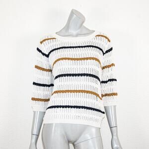 ELEVEN SIX $328 XS Malo Sweater Open knit textured stitch striped