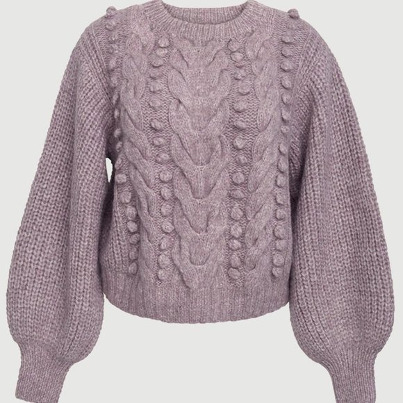 ELEVEN SIX Alpaca Cable-Knit Blouson Sleeve Sweater