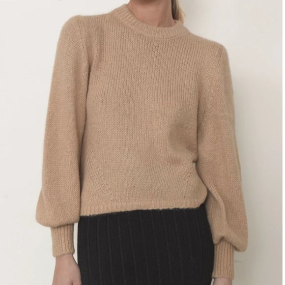 As cozy and chunky as it is chic, classic double ribbed with feminine blouson sleeves,