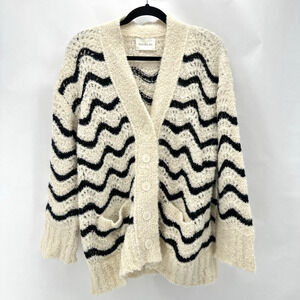 ELEVEN SIX Monica Cardigan Sweater Womens XS/S Ivory Black Relaxed Alpaca Preppy