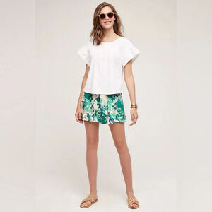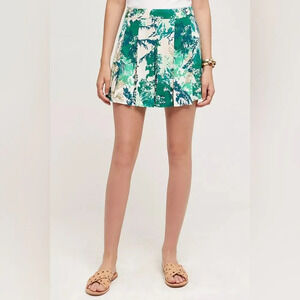 ELEVENSES by ANTHROPOLOGIE NWOT Kadu Pleated Skort in Green Motif