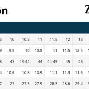 Size 44= 11-11.5 in this brand. please refer to size chart. listing as the smaller of the 2 sizes, as I have read that this brand runs a little small.