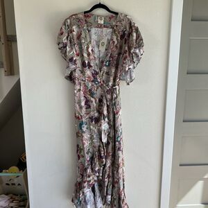 ELF Carmen Wrap Maxi Dress Floral Women’s XL Boho Bohemian