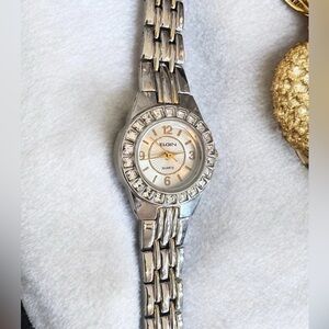 Excellent condition. Works perfectly and the rhinestones are brilliant. Incredibly elegant, sophisticated and quality wristwatch made by renowned high end watchmaker, Elgin. Once you’ve tried an Elgin, you know!