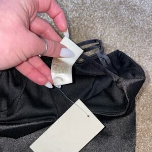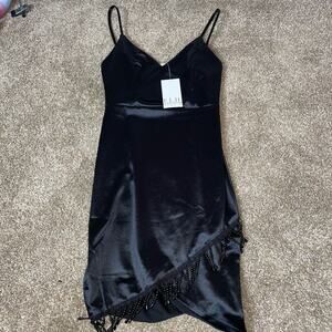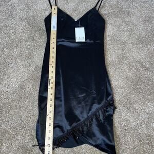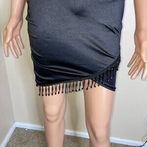 E.L.H. Studio black dress mini V-neck Satin V-neck beaded edge mini body-con SM NEW