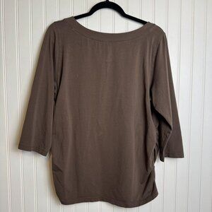 ELI brown ruched 3/4 sleeve top size 4 oversize fit Pima cotton I5
