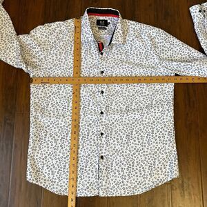 ELIE BALLEH Collection Daisy Print Long Sleeve Button-Up Shirt White/Black Sz XL M2779