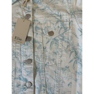 ELIE TAHARI Antique Floral Printed Raw Hem Denim Jacket White Size M
