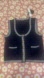 Chic black vest with white striped edges and button accents. Ideal for layering. Cropped, warm, has stretch. Fabric label in pictures. Has extra button. 18 in long, 16 in pit to pit, 13 in shoulders.