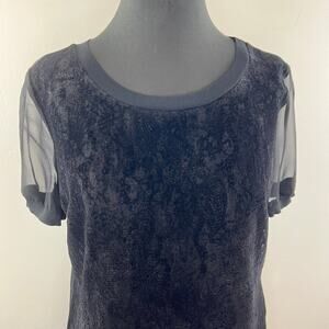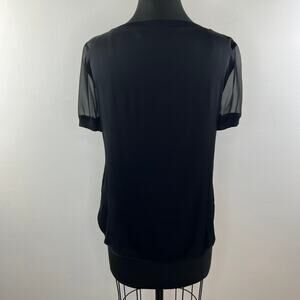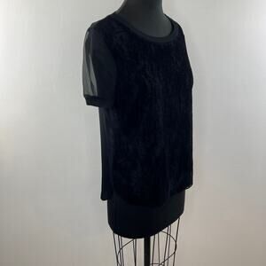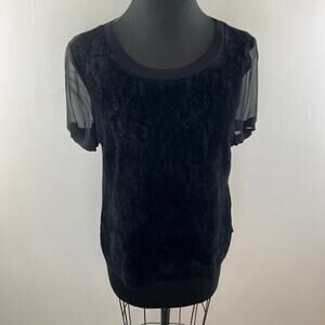 Elie Tahari Black Top Velvet Round Neck Sheer Puff Sleeve Pullover Size Small S