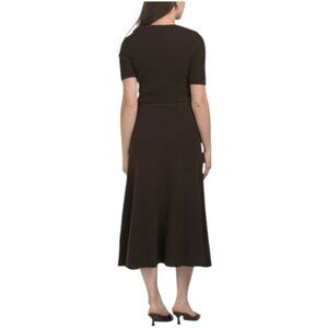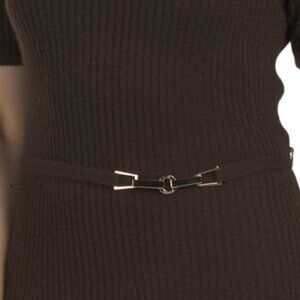 ELIE TAHARI Cashmere Elbow Sleeve Crew Neck Logo Belted Rib Midi Dress