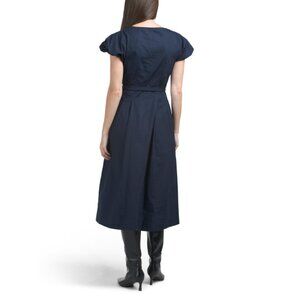 ELIE TAHARI Eclipse Puff Sleeve Scoop Neck Button Down Midi Dress With Tie Belt