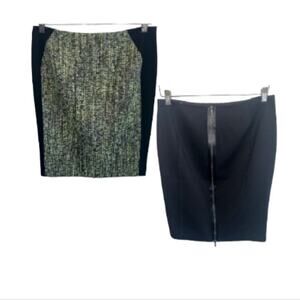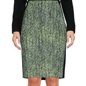 ELIE TAHARI Kelsa Wool Graphic Green Black Speckle Tweed Pencil Skirt 6 New