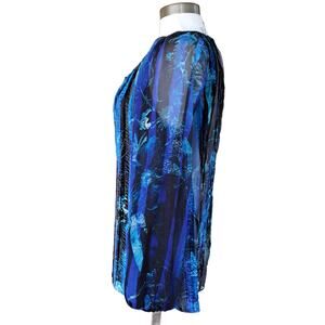 This is the shirt with the wow factor. The luxe burnout velvet design in rich shades of blue adds depth & contrast to its velvet patina. Dress it down for day with denim or up for an elegant night out.