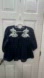 Stylish navy blouse with elegant white floral accents. Ideal for any event.