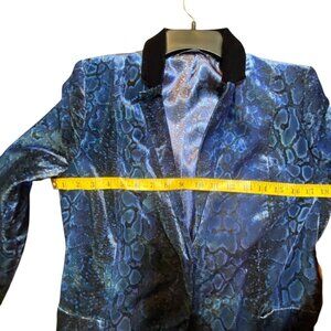 ELIE TAHARI OMBRE VELVET ANIMAL PRINT SMOKING JACKET BLAZER DUSTER ROYAL BLUE S
