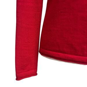 ELIE TAHARI Red Extra Fine Merino Wool Round Neck Mesh Detail Women’s Size Small
