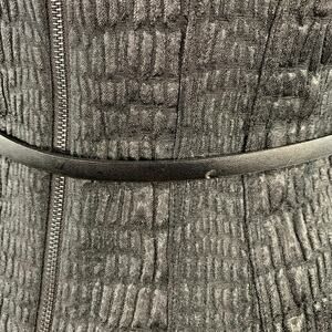 ELIE TAHARI dress in a black polyester blend fabric featuring a sleeveless style, textured design, and back zipper closure with belt.