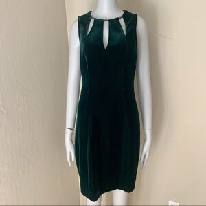 ELIE TAHARI Velvet Green Sleeveless Sheath Dress Cut Out Cocktail Party Size 0