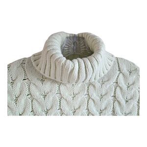 ELIE TAHARI Women's Size L Sweater - Cropped, Cable Knit, Lime Green, Turtleneck, Drop Shoulder, Long Sleeve, Chunky Knit, 89% Acrylic, 7% Polyester, 4% Polyamide