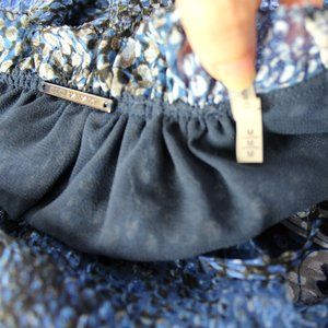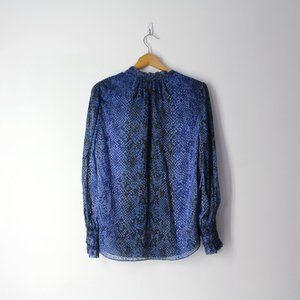 ELIE TAHARI Zeina floral and Snake Print Blouson Sleeve Blouse top blue Sz M