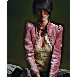 ELIE TAHARIβ*TOVA* DUSTY ROSE VELVET VICTORIAN STYLE BUTTON DOWN JACKET TOP S/XS
