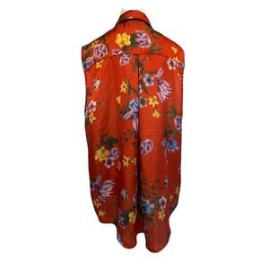 ELIE Tahari Satin Button Top Womens XL Rust Tropical Floral Sleeveless Shell