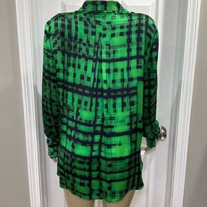 ELIE TAHARI SILK SHIRT. GREEN AND NAVY BLUE.