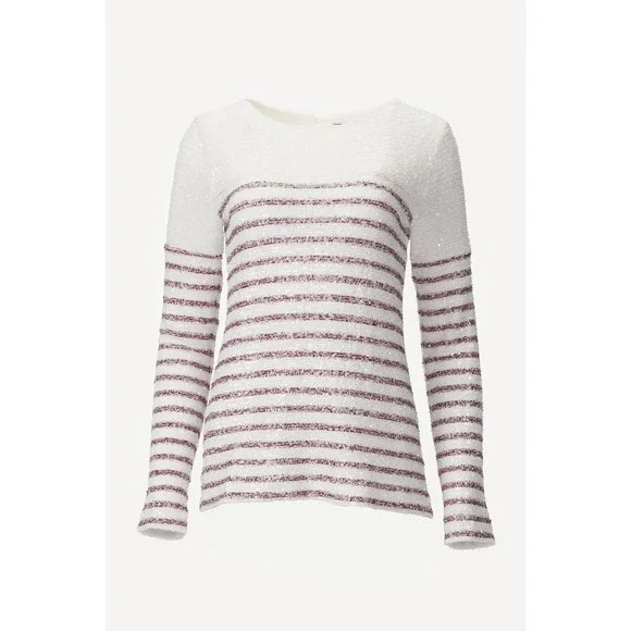 We love In The Mood For Love's 'Elise' top dressed up with a mini skirt or leather pants just as much as dressed down with denim and sneakers. Made of soft jersey and drenched in shimmery sequins in white and burgundy, it has a classic round neckline and a slightly relaxed fit.