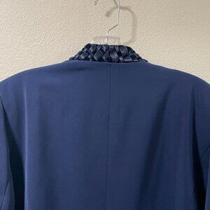 * Fully lined, velvet/satin latticed ribbon trim collar and lapels