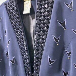 ELITE CHAMPAGNE Rare Find Vintage Blazer Embroider Cutouts Rhinestones, Navy -12