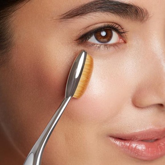 The Linear 6 applies products to linear shaped areas of the face, like your eyebrows or can be turned sideways to sweep product across the eyes or cheeks.