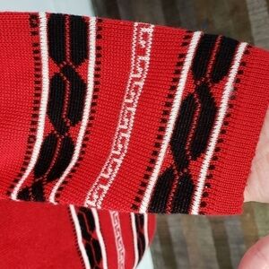 ELITEX New Zealand Fine Wool Blend Cardigan Red & Black with Suede Accents EUC