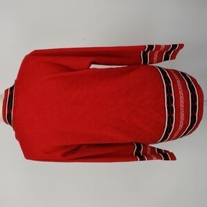 Elitex of New Zealand Long Cardigan Red & Black with Suede Accents EUC