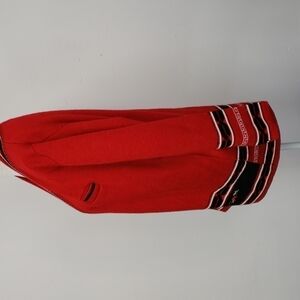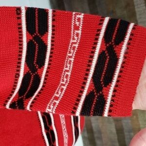 ELITEX New Zealand Fine Wool Blend Cardigan Red & Black with Suede Accents EUC