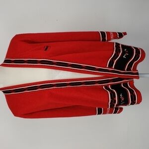 Elitex of New Zealand Long Cardigan Red & Black with Suede Accents EUC
