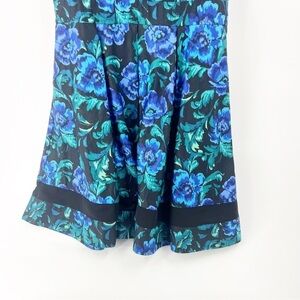 ELIZA J BACKLESS MIDI FLORAL DRESS SIZE 14 TEAL/BLACK/BLUE. EUC