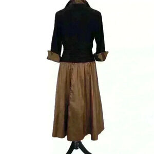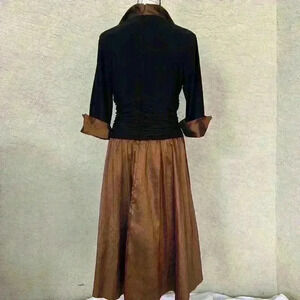 ELIZA J BLACK FIT & FLARE Cuff 3/4 Sleeves V Neck Ruched Waist Sz 14P