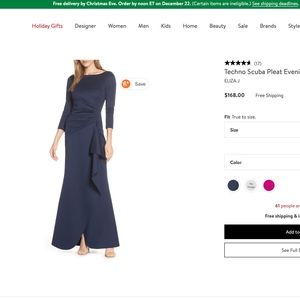 ELIZA J BLUE Techno Scuba Pleat Evening DRESS GOWN