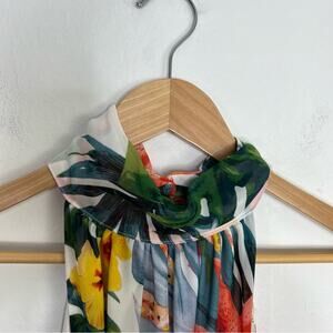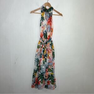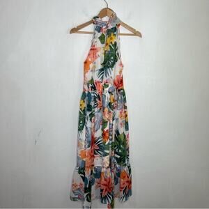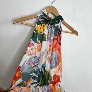 ELIZA J Beige Pleated Ruffled Lined Floral Sleeveless Halter Dress Size 6