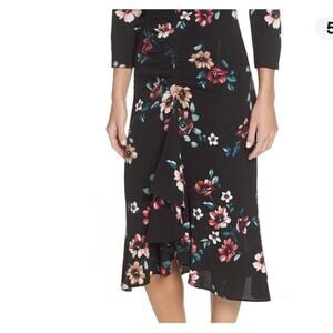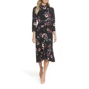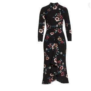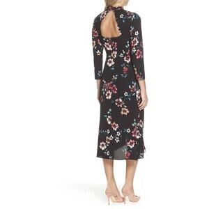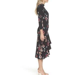 🖤 ELIZA J Black Pink Red Floral Print Ruffle Mock High Neck Cut-out Dress 8