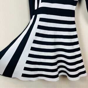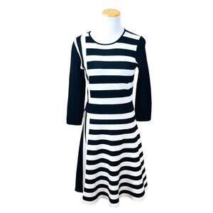 ELIZA J Black White Striped Long Sleeve Knit Fit and Flare Dress PETITE MEDIUM