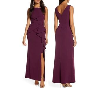 ELIZA J CASCADING RUFFLE Front PLEATED Waist EVENING GOWN Wine size 2 NWT $188