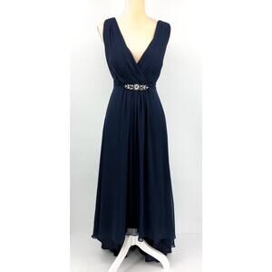 ELIZA J Chiffon Formal Dress Size 8 Navy Blue Embellished High Low NWOT
